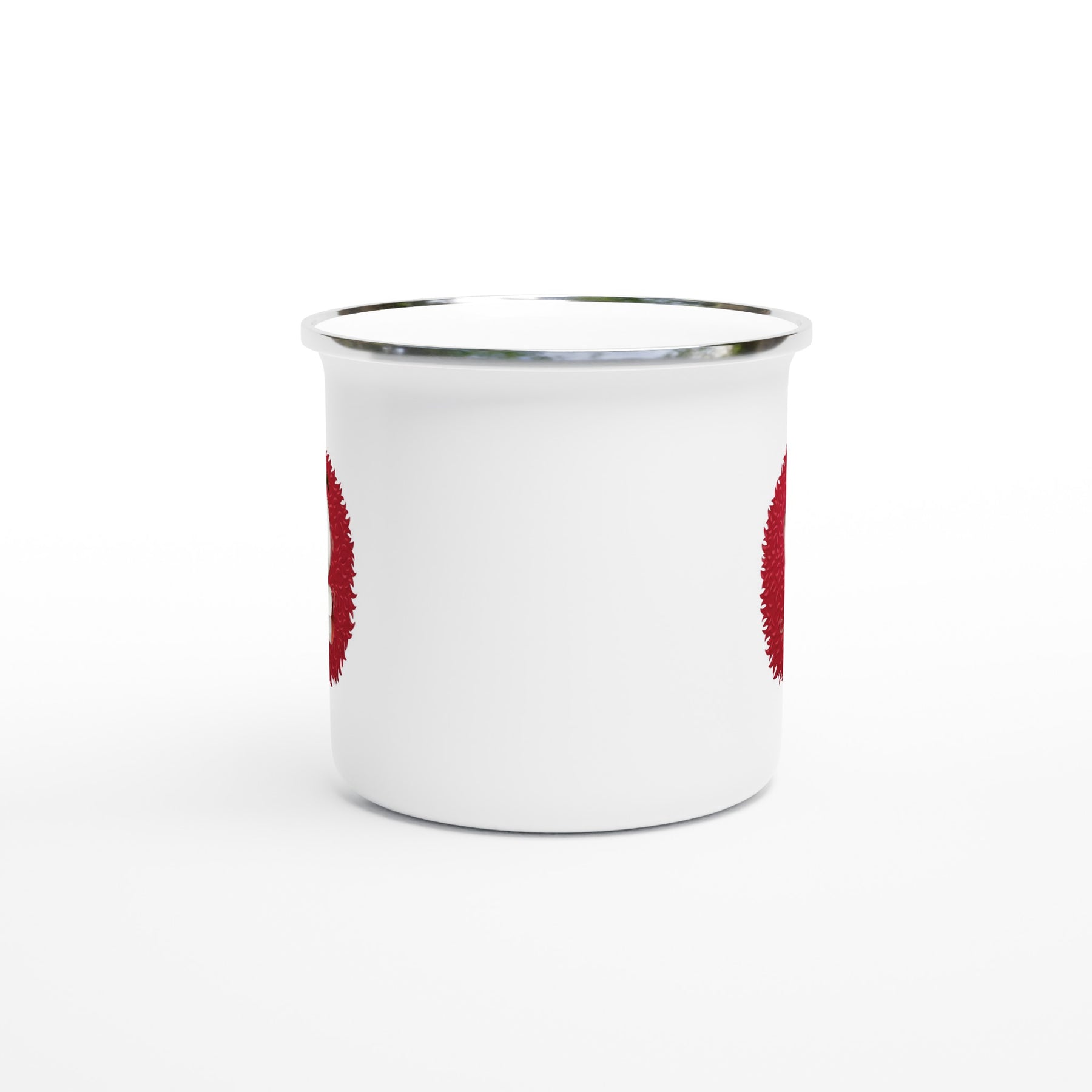 Emaljmugg i metall med "vintage"-känsla på den vita ytan. Perfekt att ta med på utflykt då den är tålig.