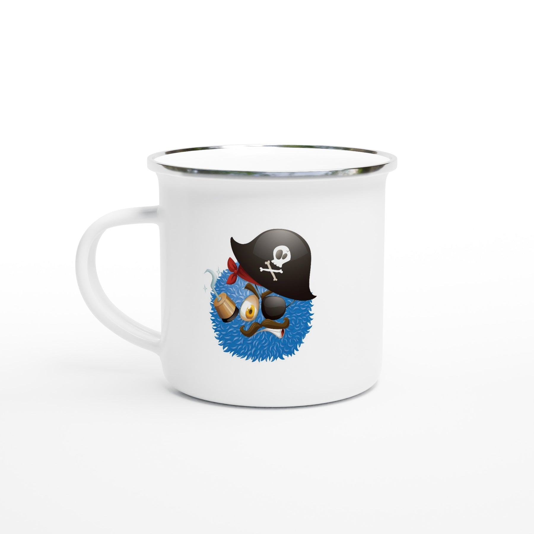 Pirat som en fluffig pompong boll - emaljmugg till barn