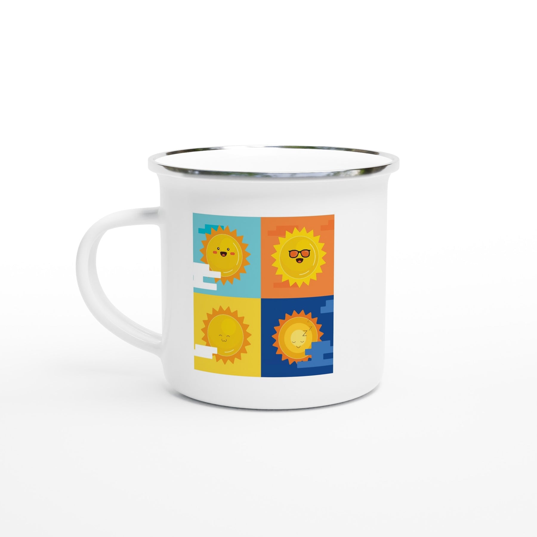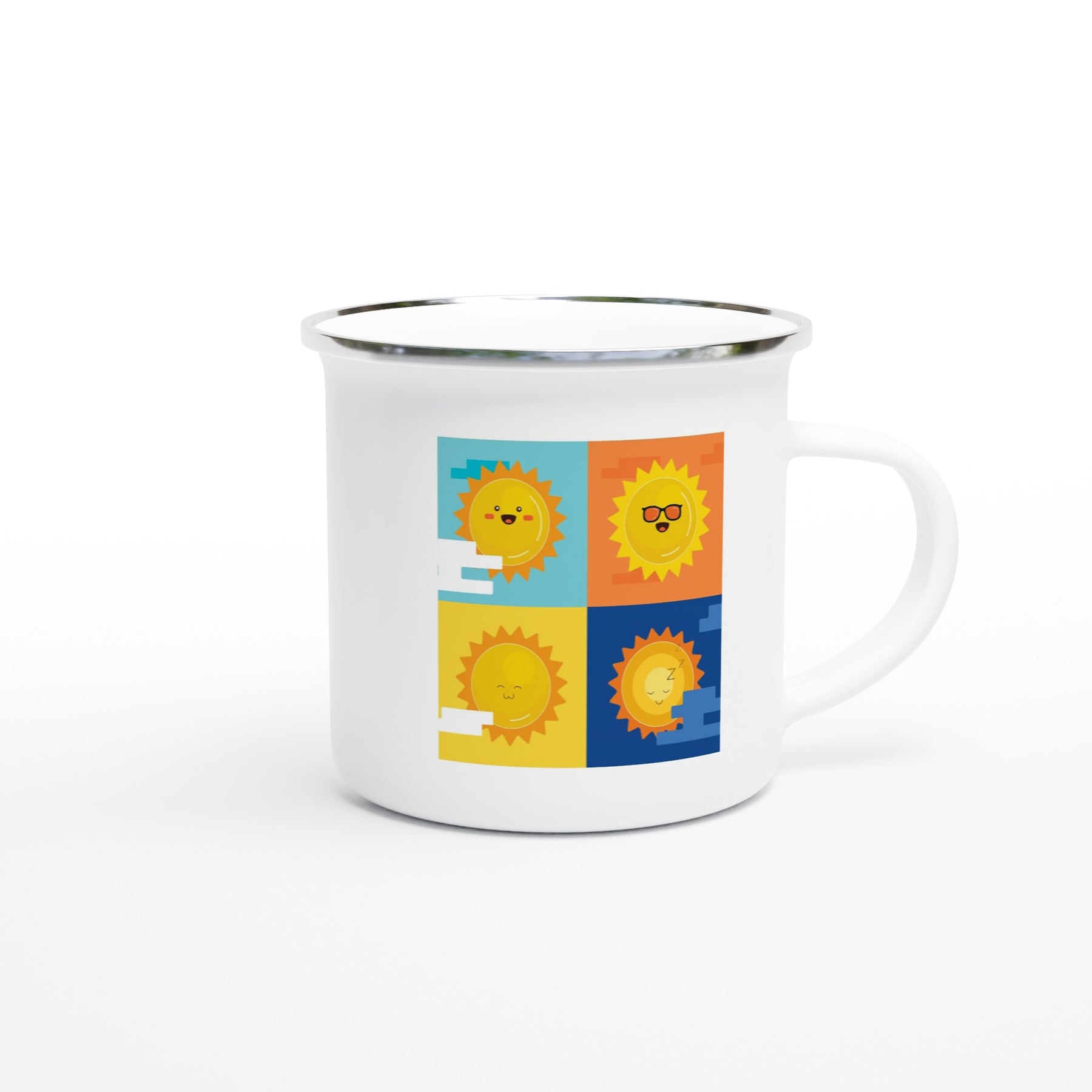 Rolig emaljmugg med tryck - solens fyra lägen