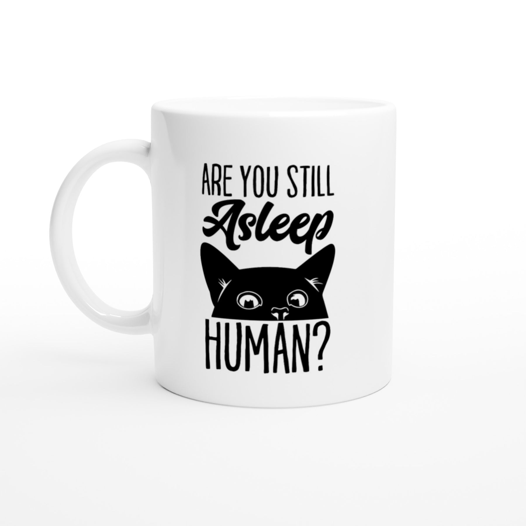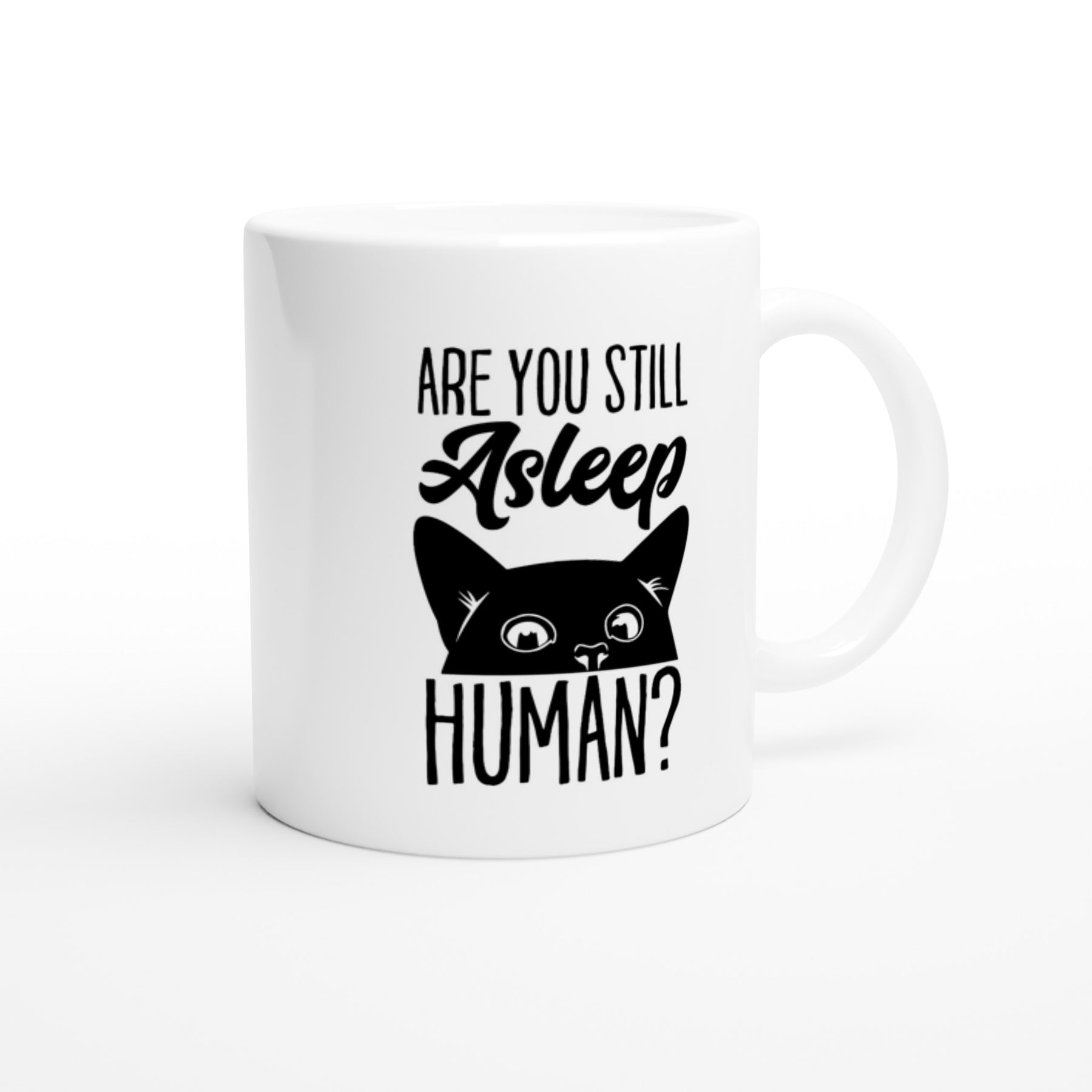 Rolig mugg "Are you still asleep human" - present, julklapp, födelsedag