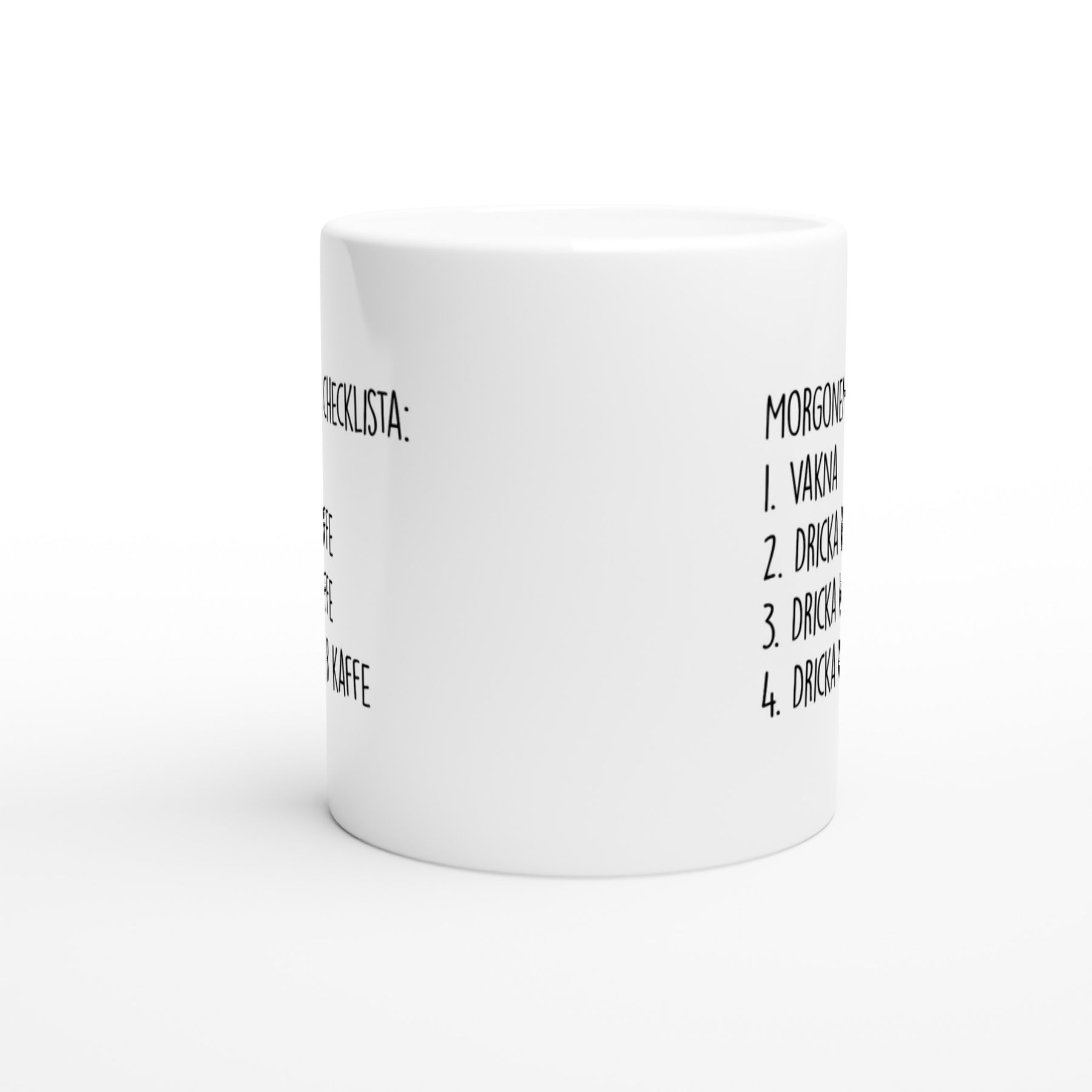 Denna vita keramiska kaffemugg är perfekt för alla varma drycker. Ett stort C-handtag gör den enkel. Oavsett om du dricker ditt morgonkaffe på jobbet eller smuttar på en varm kopp te hemma så klarar denna mugg uppgiften. Den tål mikrovågsugn och diskmaskin för din bekvämlighet.